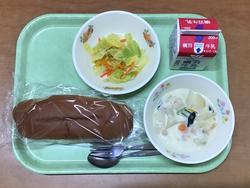 シチューは温かくて、いろんな具材が入っていて美味しかったです♪くろパンは柔らかくて美味しかったです😋野菜ソテーはシャキシャキしていて美味しかったです☺️(給食委員会 R) |