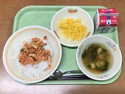 ★3月3日(火) ごはん 牛乳 菜の花ごはんの具(さけそぼろ・卵そぼろ) すまし汁