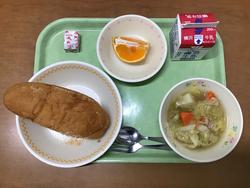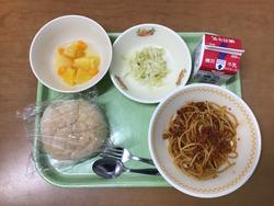 ソフトフランスパンが結構おいしかったです。粉がかかってていい役してました!スパゲッティ結構具が入ってて、よかった!フルーツポンチは、いつも通りで美味しかったです。(給食委員会N&M) |