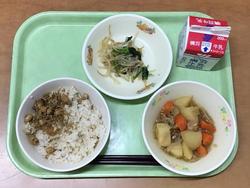 ★3月13日(金) はいがごはん 牛乳 肉じゃが 煮びたし だいずとじゃこの炒り煮