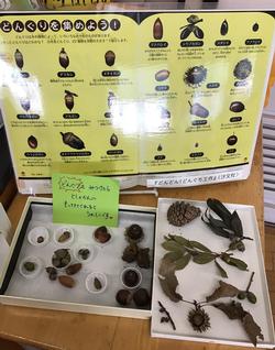 1年生が秋さがしでどんぐりを集めているので、それに合わせて学校図書館ではいろんなどんぐりについて展示しています。