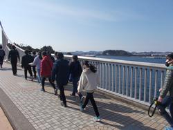 学校から海の公園を通って八景島まで、潮風を感じながら歩いていきました。八景島から野島山や日産の追浜工場も見ることができました。