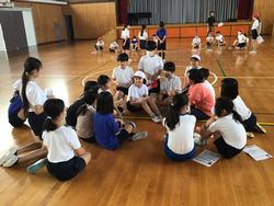 赤組・白組に分かれて、声出しや旗ふりの練習をしたり、「ゴー ゴー ゴー」の音楽に合わせて応援合戦の練習をしたりしています。練習の様子から応援団の子どもたちの気合いが伝わってきました。