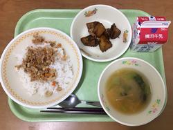 にくそぼろの味付けがちょうど良くて、yummyでした。のっぺいじるは飲みやすくて、口内炎が痛くても飲めました。ごましょうゆあえはもやしとこまつなの味付けがGOODでした。(給食委員会 n) |