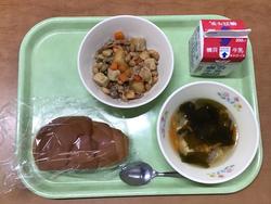 ★11月18日(火) ロールパン 牛乳 変わり五目豆 わかめスープ