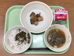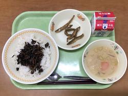 魚のから揚げはカリカリしてておいしかったです。ひじきごはんの具は油揚げが味が染みててじゅわっとしました。ごしるはだいこんがほくほくしてておいしかったです。(給食委員会 e) |