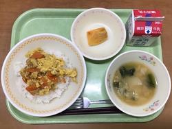 今日の給食の親子丼は卵がふわふわで美味しかったです。味噌汁はじゃがいもが柔らかくて食べやすかったです。(給食委員会 ) |