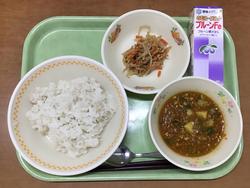 ★12月15日(月) はいがごはん さつまいものキーマカレー ごま酢あえ プルーンはっこう乳