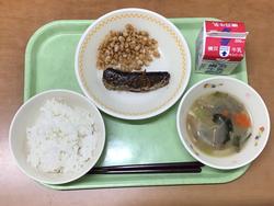 今日の納豆は、ご飯と合いネバネバしてとても美味しかったです。そしてひじきとキャベツのごまずあえは、やわらかくて美味しかったです。豚肉と大根の煮物は、大根に味が染みて美味しかったです。(給食委員会T&K) |