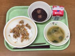 ★2月13日(金) ごはん 牛乳 ツナそぼろ みそ汁 白玉ぜんざい