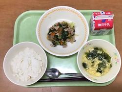 ★2月18日(水) ごはん 牛乳 はまポークとこまつなのスタミナ炒め 豆腐とわかめの卵スープ