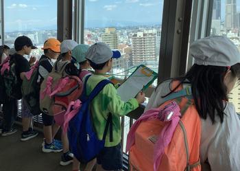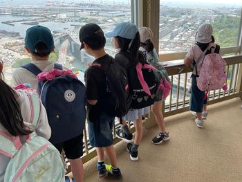 マリンタワーの展望台から横浜市の土地・建物・交通の様子を調べていました。楽しみながら、社会科的な発見がたくさんあったようです。