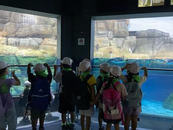 実行委員が考えた「なかよく たのしく いこう」のめあてで、遠足に行ってきました。グループの友達と一緒にペンギンやあざらし、たくさんのお魚たちを見ました。わくわくのイルカショーやフォレストリウムエリアを楽しく見学できました。
