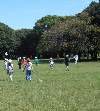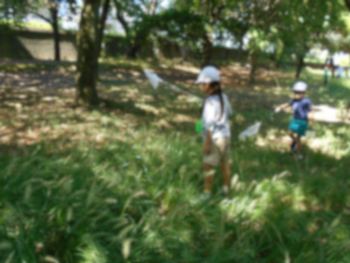 天気に恵まれ、子どもたちは元気いっぱい生き物探しに出かけました。トンボやバッタを見つけることができ、とても楽しそうでした。