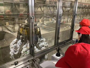 10月28日に都筑区にある資源循環局に行きました。大きなクレーンでたくさんのごみをつかみ、かくはんする様子を見ました。