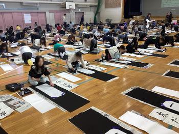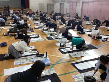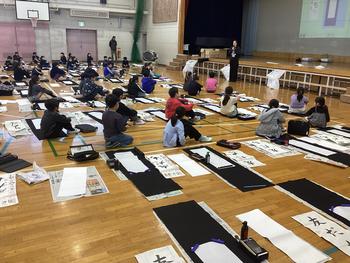 書き初めとは何か話を聞いた後、今年の目標など、それぞれの想いを込めて、「友だち」と書いていきました。