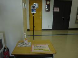 笠間小学校の玄関に、非接触型の検温計が設置されました。
