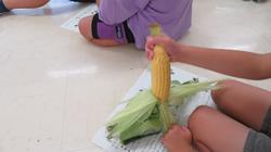 トウモロコシの皮むきを、2年生がしました。