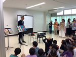 『ひめさま!ぞうはすごく大きいでござる。』(作:丸山誠司)を読書ボランティアの方々と副校長先生が読んでくださいました。