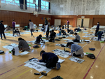 3年生から6年生は、体育館で、書初め用紙に書写を行います。
