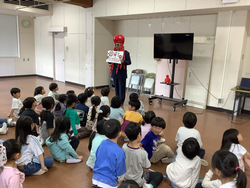 今日も警察の方に来ていただき1年生で防犯教室を行いました。犯罪にあわないために、遊びに行くときはおうちの人に伝えること、数人で遊ぶこと、大きな声を出して助けを呼ぶことなどを教えてもらいました。