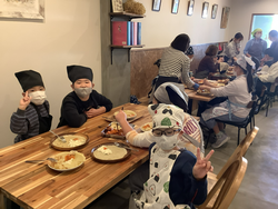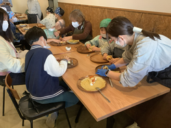 11月17日、地域の洋菓子店ラコリーンアトリエカフェで、学校でとれた柿とザクロを使ったクレープづくりを体験させていただきました。