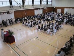 入学式では一年生が期待を胸に元気に入場する姿が見られました。川井小学校の一員として元気に成長していってほしいと思います。