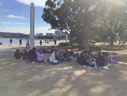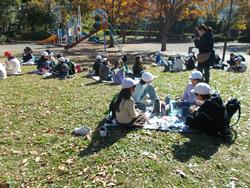 見学後は、湘南台公園に移動して、グループごとにお弁当を食べました。前回の心のふれあいコンサートの昼食時と同様、ぽかぽか陽気の中、みんなで楽しくおしゃべりしながらお弁当を食べ、食後はどんぐりを拾ったり鬼ごっこをしたりそれぞれ好きなことをして過ごしました。今回が5年生最後のお出かけになりましたが、よい経験ができたのではないかと思います。
