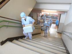 さて川井小学校では、低学年の給食を各学年のフロアに運んでもらっています。