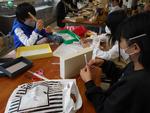 図工室では6年生が「くるくるクランク」の仕組みを、先生と一緒に確かめていました。