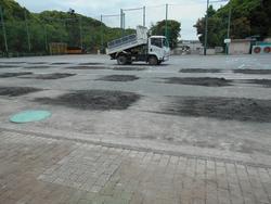 川井小学校では吹き付ける風で校庭の砂が減っていってしまいます。