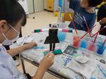 理科室前では、3年生が理科「風とゴムのはたらき」の実験を行おうとしています。