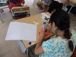 1年生は教室で図工「ゆらゆらゆれて」の作品作りです。