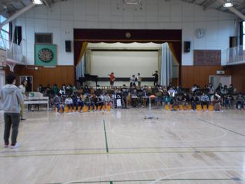 体育館では「音楽会」に向けて5・6年生がお互いの演奏を聴き合っています。