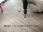 その後、自分たちで穴の空いた机や、天板の一部分が剥がれた机にパテを塗りました。
