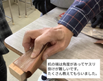 東戸塚おじさんボランティア助っ人隊の方に、引き続きヤスリの使い方や擦り方を教えてもらい