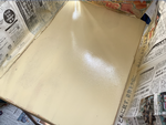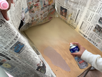 まず、やすりがけをして、新聞紙を周りに貼ってスプレーをかけて、、、
