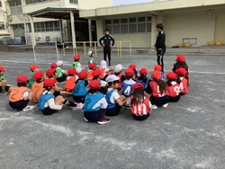 横浜・F・マリノスの選手2名が来校し、サッカー教室を開いてくださいました。