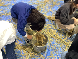 わりばしを使っての脱穀・もみすり体験をしました。