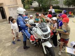 パトカーや白バイを目の前にして、子ども達は興味津々な様子でお話を聞いていました。神奈川県警都筑警察署の皆様、ご協力ありがとうございました!