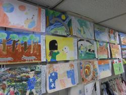読書の秋に、読書感想画の作品が掲示される学年があります。こちらは5年生の作品ですが、それぞれが描きたいものをしっかりと絞って、伝えたいものを大事にして描かれています。短い秋の季節感を感じながら、読書に親しんでいる姿まで伝わってきます!