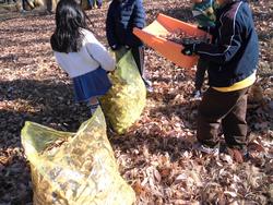 12/23(火)北門方面から何やら熱気が伝わってきました。なんだろうと覗いてみると…3年1組が熱心に落ち葉を嶮山公園をきれいにしてくださっている地域の方々と一緒に集めてどんどん黄色いビニル袋に詰めていました。開始20分ぐらいでその数は10を超えていました。清掃活動に取り組む子どもたちの顔は生き生きしていて、「こんなにも落ち葉が山になったよ~」「ようやく地面が見えてきたよ~」「袋に入れてグッと踏みつけるとまだ落ち葉は入るんだよ」など自分たちの気付きを教えてくれました。地域の方々とともに作業をさせていただくことで、自分たちが地域の一員であることに気付くきっかけになっているなと感じました。嶮山公園をきれいにしてくださっている地域の方々、本日は早くから準備をしてくださっていたとお聞きしました。子どもたちのために本当にありがとうございました。子どもたち幸せです。