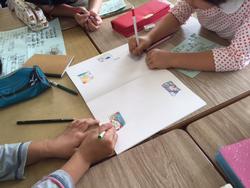 今日はしおりを読み、テーマや持ち物、時程などの確認をしたり、班のマークを決めたりしました。きょうだい班のメンバーの顔合わせはすでにすんでいるので、今回は会話が弾んでいる班の方が多かったですが、まだちょっと緊張気味の班もありました。今週の金曜日にもキッズ会議が行われます。徐々に緊張の壁が取れていき、本番を迎えるのだと思います。(文:矢吹)