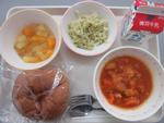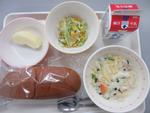 (写真は、教室でお弁当を食べている様子と出発の様子です)