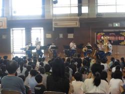 横浜市消防音楽隊の皆さんが来校し、4年生に「G線上のアリア」などのクラシック、なじみのある「トトロのテーマ」などの曲を演奏してくださいました。「これが最後の曲になります。」というアナウンスがあると子どもたちからは「えぇぇぇぇ。」の声、「マツケンサンバ」の曲が演奏されると子どもたちは体を揺らしながら楽しんでいました。