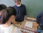 本校のボーリング調査を行った北海ボーリングの方による、地層の出前授業がありました。本校のボーリングサンプルや、大きなアンモナイトの化石の一部に触れながら、地層のプロから「菊名小の大地のつくり」を教えていただきました。