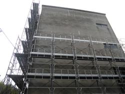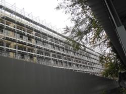 9月下旬から始まった第2期取壊し工事。校舎内の取壊し等が終わり、いよいよ足場を組んで本格的な取り壊しが始まります。