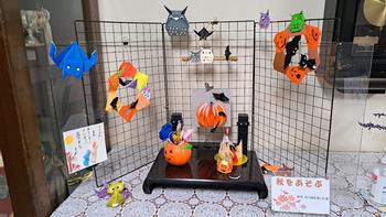 地域の「折り紙を楽しむ会」の皆さんが、季節に合わせた制作したものを職員玄関脇に展示しています。今は十五夜やハロウィンにちなんだ、かわいらしい作品が並んでいます。