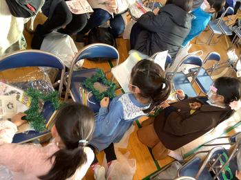 コンサートの後、子どもたちはリース作り。形や飾りを工夫して、楽しんで作りました!