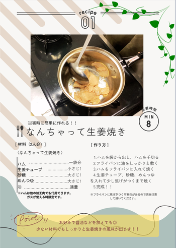 道具も少なく、材料もカラムーチョとキャベツ、マヨネーズだけで少ない材料で作れ、災害時も役に立つと思います!